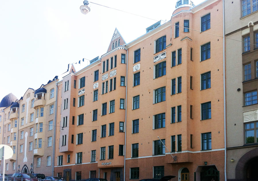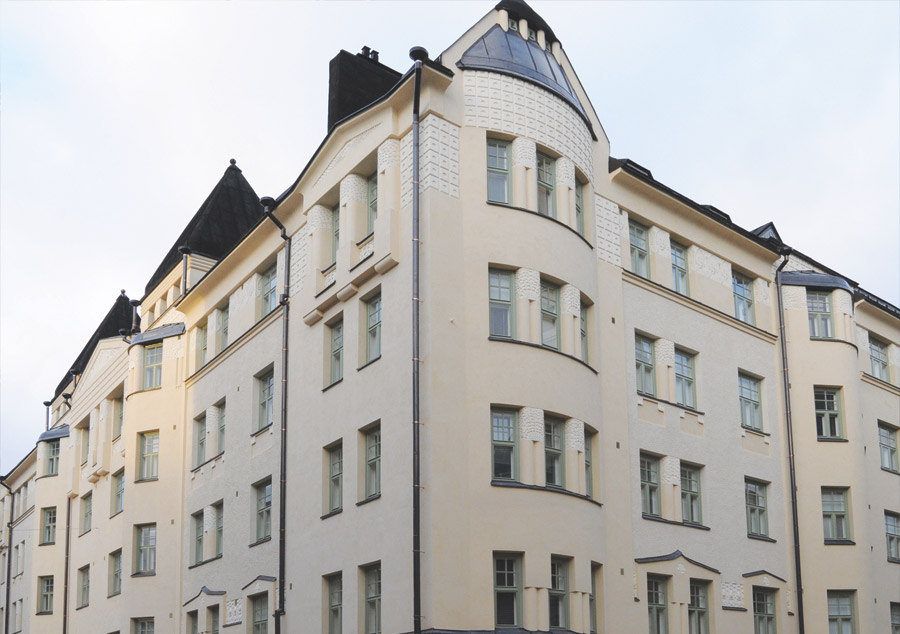 Fredrikinkatu 22, 00120 Helsinki. Vuonna 1904 rakennetun kerrostalon julkisivujen korjaustöiden suunnittelu ja valvonta.